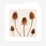 Loved by goldfinches and admired for its prickly conical seed heads, this greetings card features a splendid Teasel. Our Teasel greetings card is printed on a beautifully textured art stock for a high-quality, natural feel.