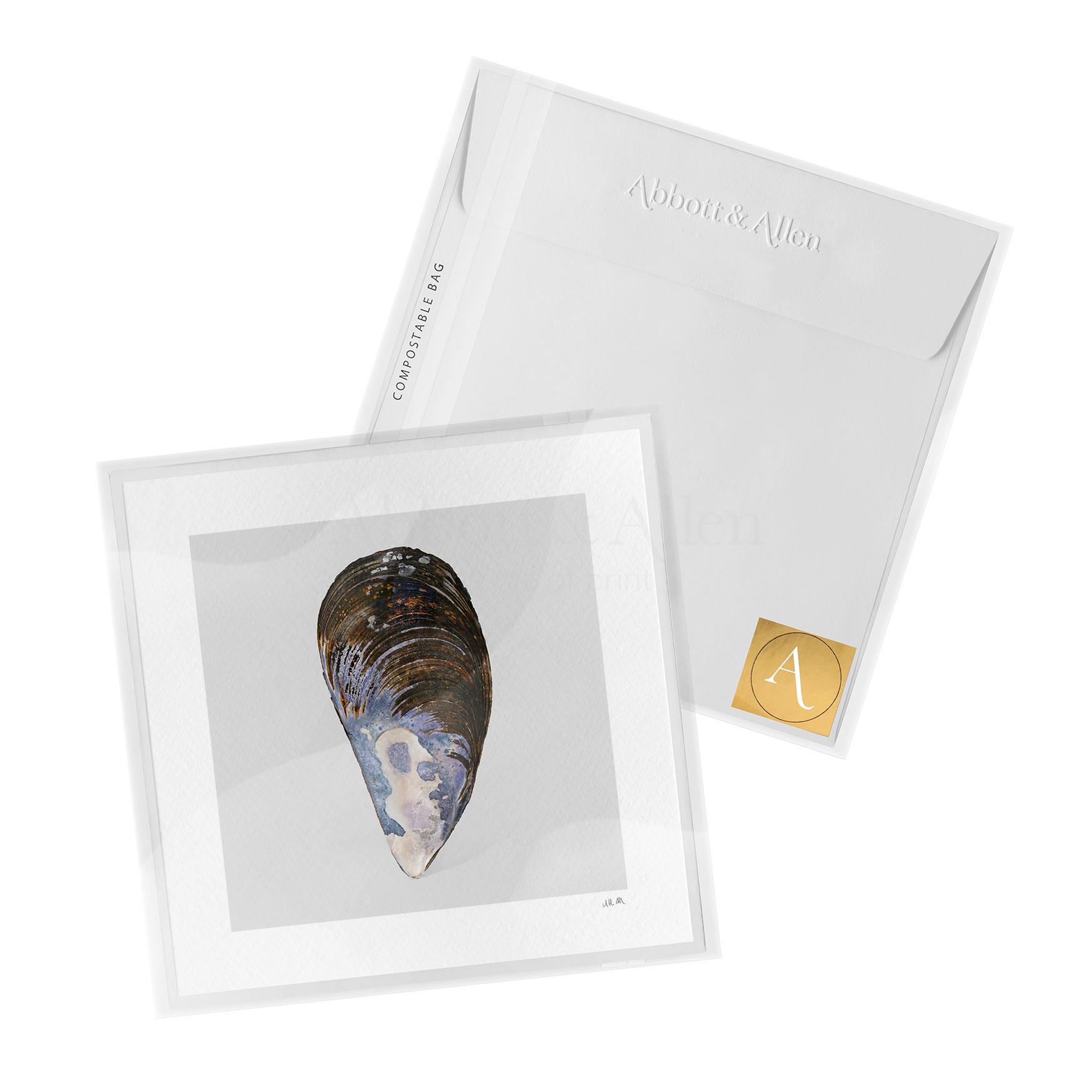 Exuding elegant, rustic charm, this card features a blue-purple iridescent Cornish Mussel. Our Cornish Mussel greetings card is printed on a beautifully textured art stock for a high-quality, natural feel.