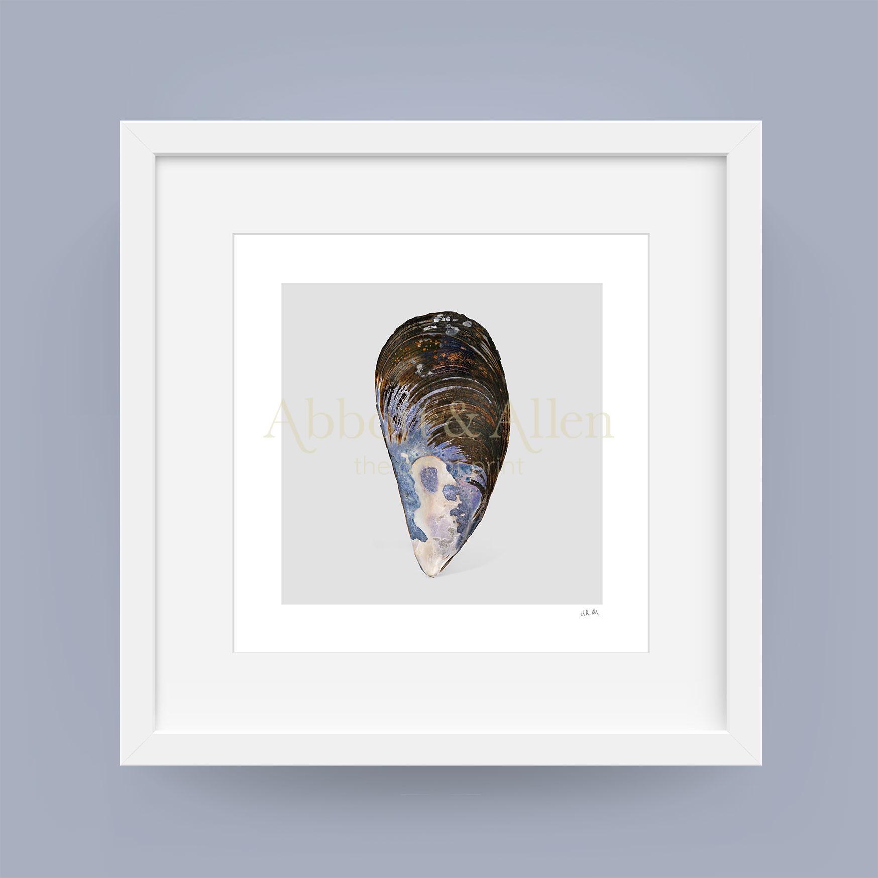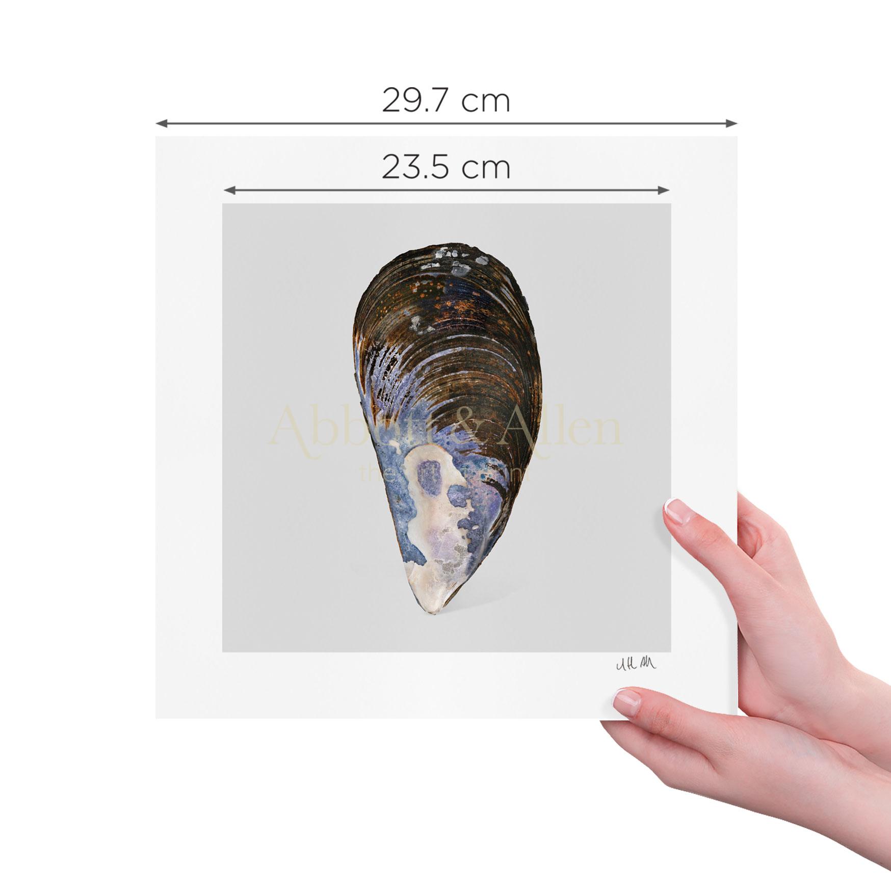 Exuding elegant, rustic charm, this art print features a blue-purple and iridescent Cornish Mussel. Our Cornish Mussel art print is printed on high-quality 300gsm textured art stock.