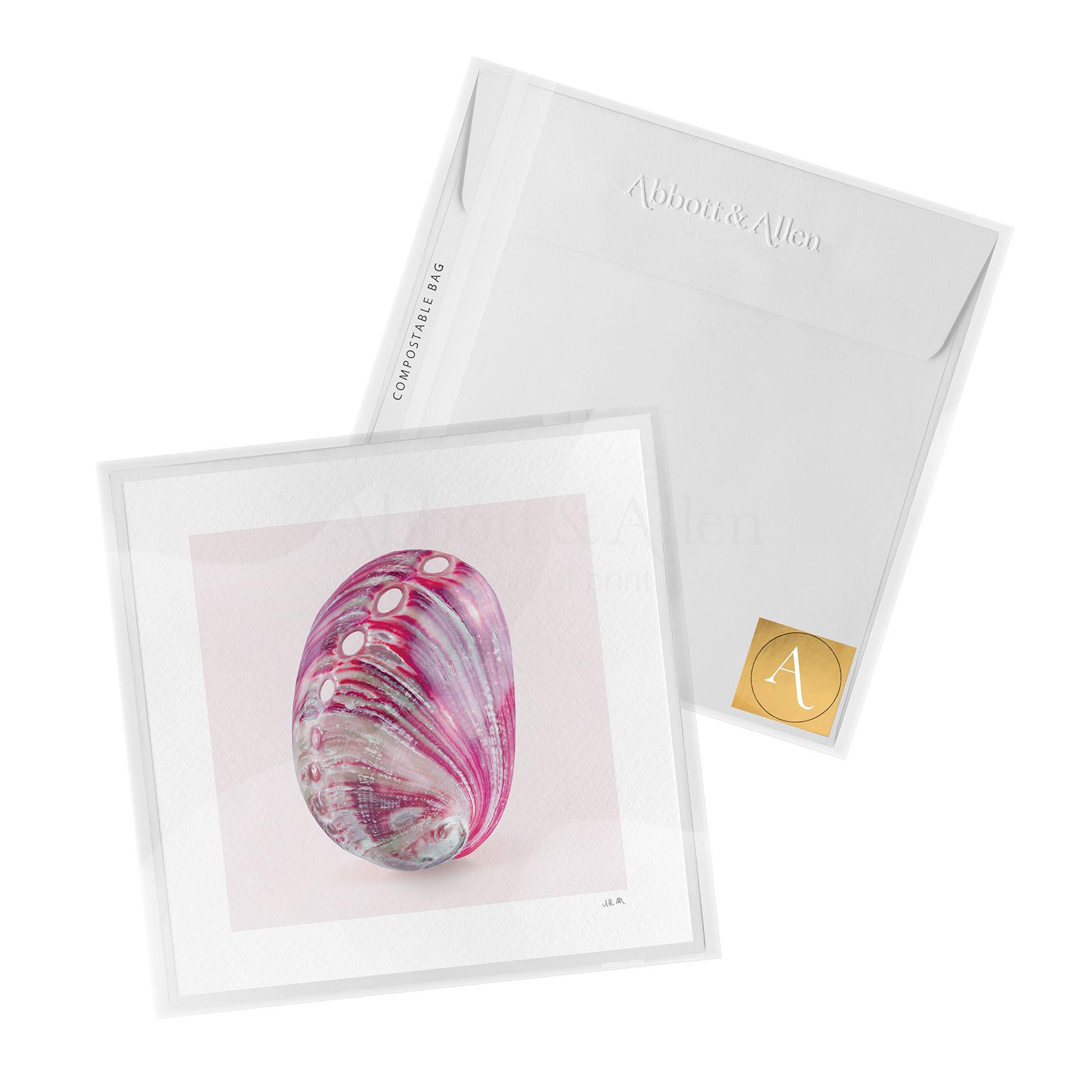 Radiant with eye-catching pink colouration, this card features a beautiful and alluring Abalone Seashell. Our Abalone Seashell greetings card is printed on a beautifully textured art stock for a high-quality, natural feel.