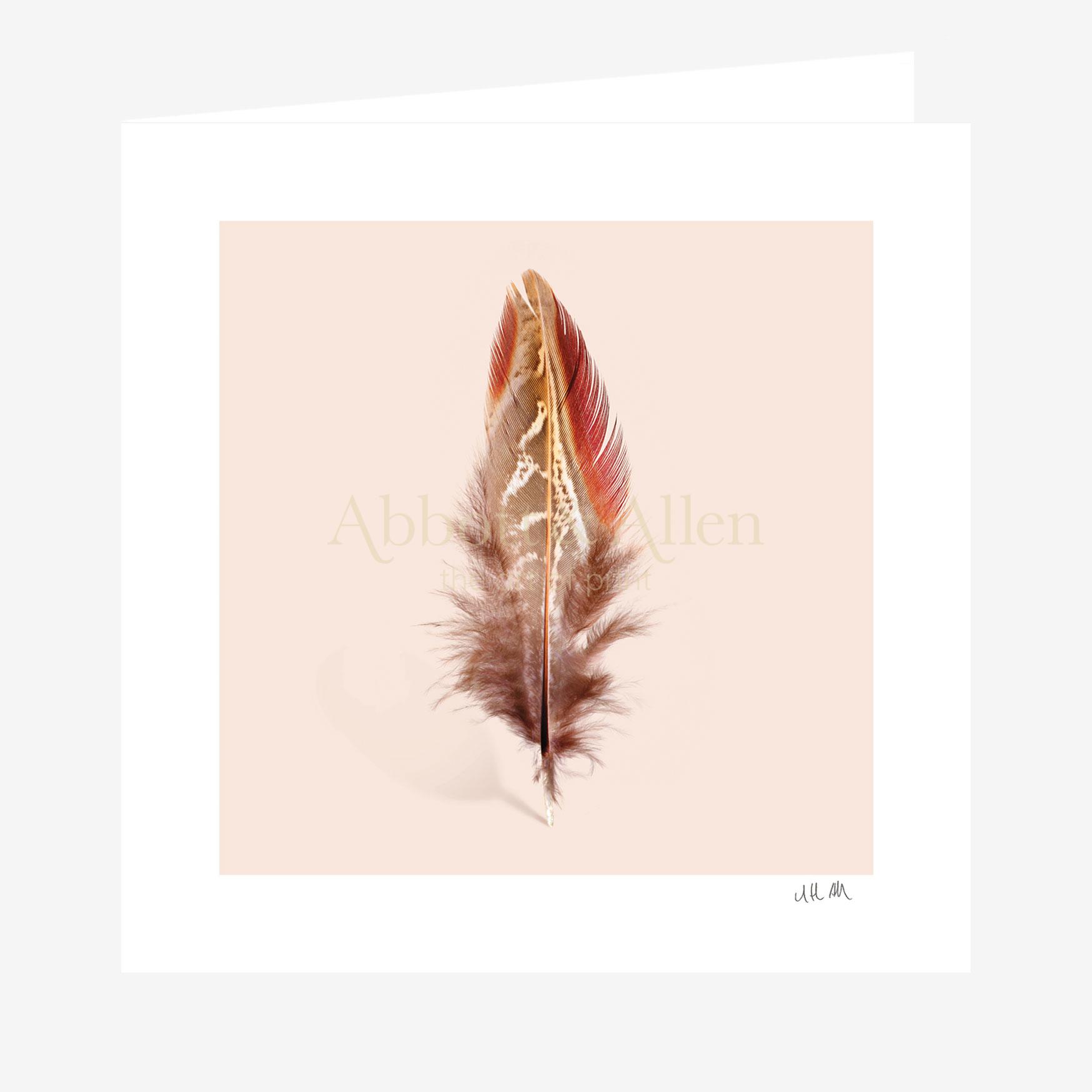 Bursting with colour and a myriad of tones and textures, this greetings card features a delightful Cock Pheasant feather. Our Cock Pheasant feather greetings card is printed on a beautifully textured art stock for a high-quality, natural feel.