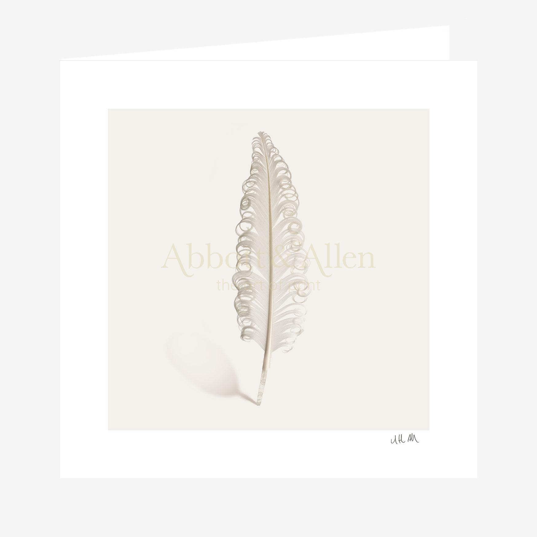 Displaying delicate swirls of plumage, this greetings card features a stylish curled Nagoire Goose feather. Our Nagoire Goose feather greetings card is printed on a beautifully textured art stock for a high-quality, natural feel.