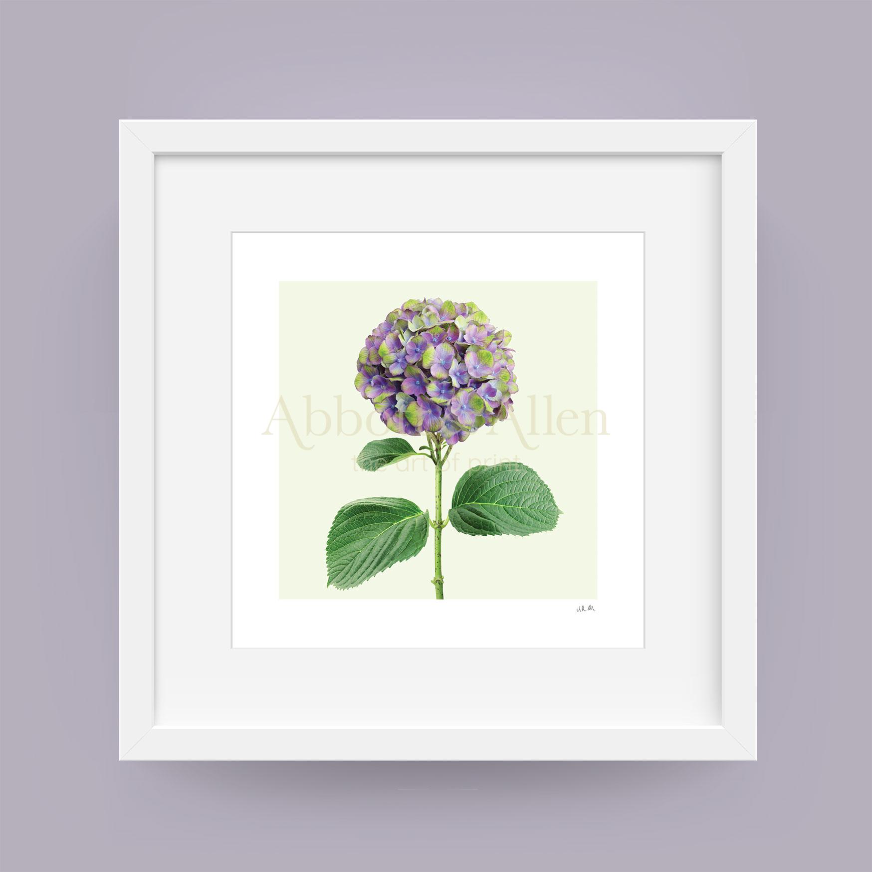 Acclaimed for its large, striking globes of bright flowers, this art print features a stunning Hydrangea bloom. Our Hydrangea art print is printed on high-quality 300gsm textured art stock.