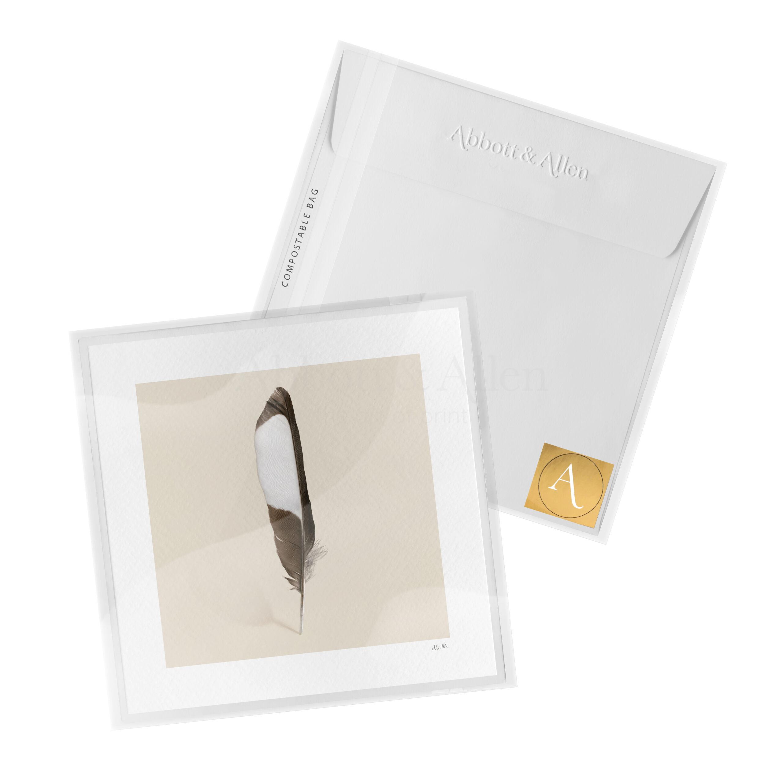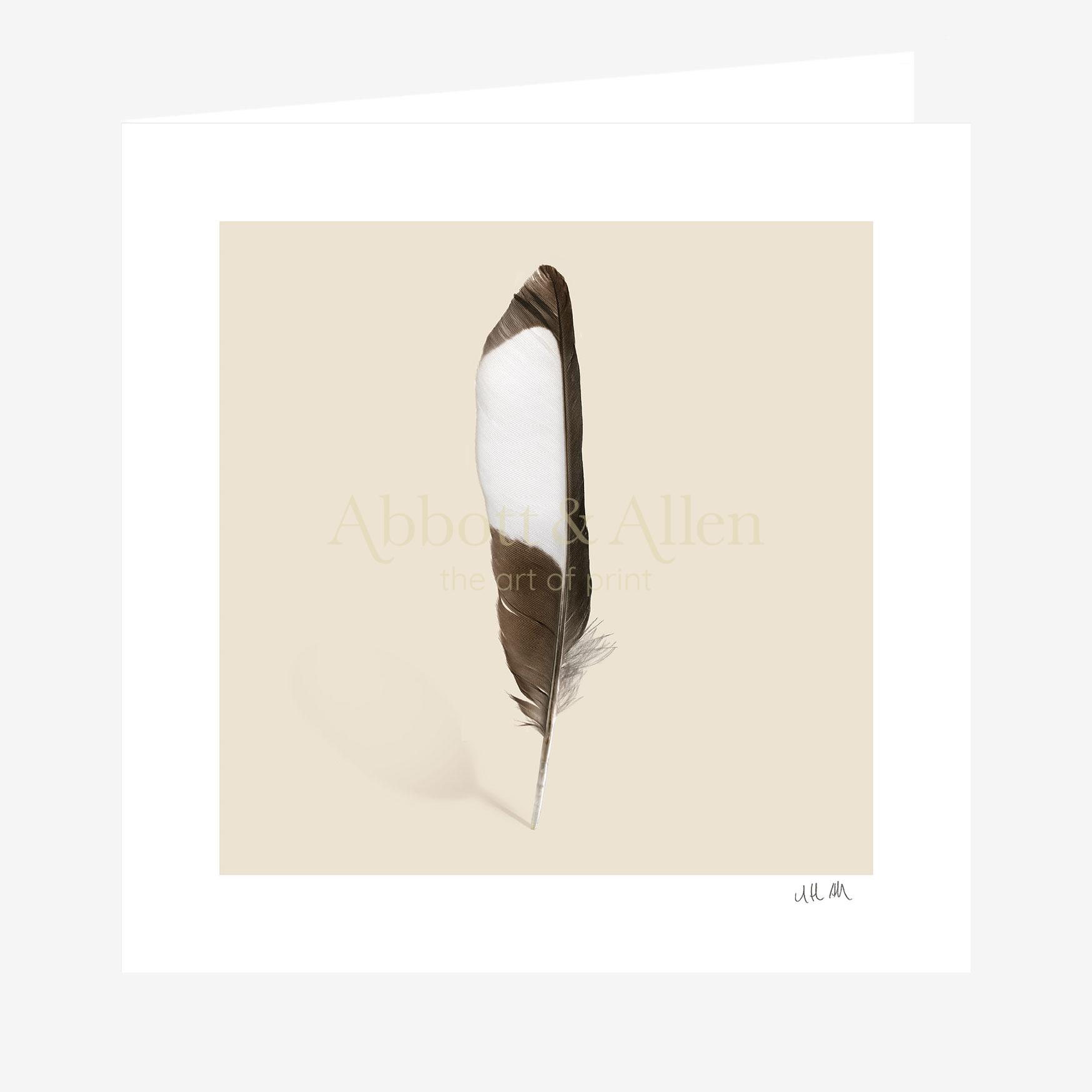 An unmistakeable long-tailed bird, seen frequently across Britain, this greetings card features the familiar black and white colouration of the Magpie. Our Magpie Feather greetings card is printed on a beautifully textured art stock for a high-quality, natural feel.