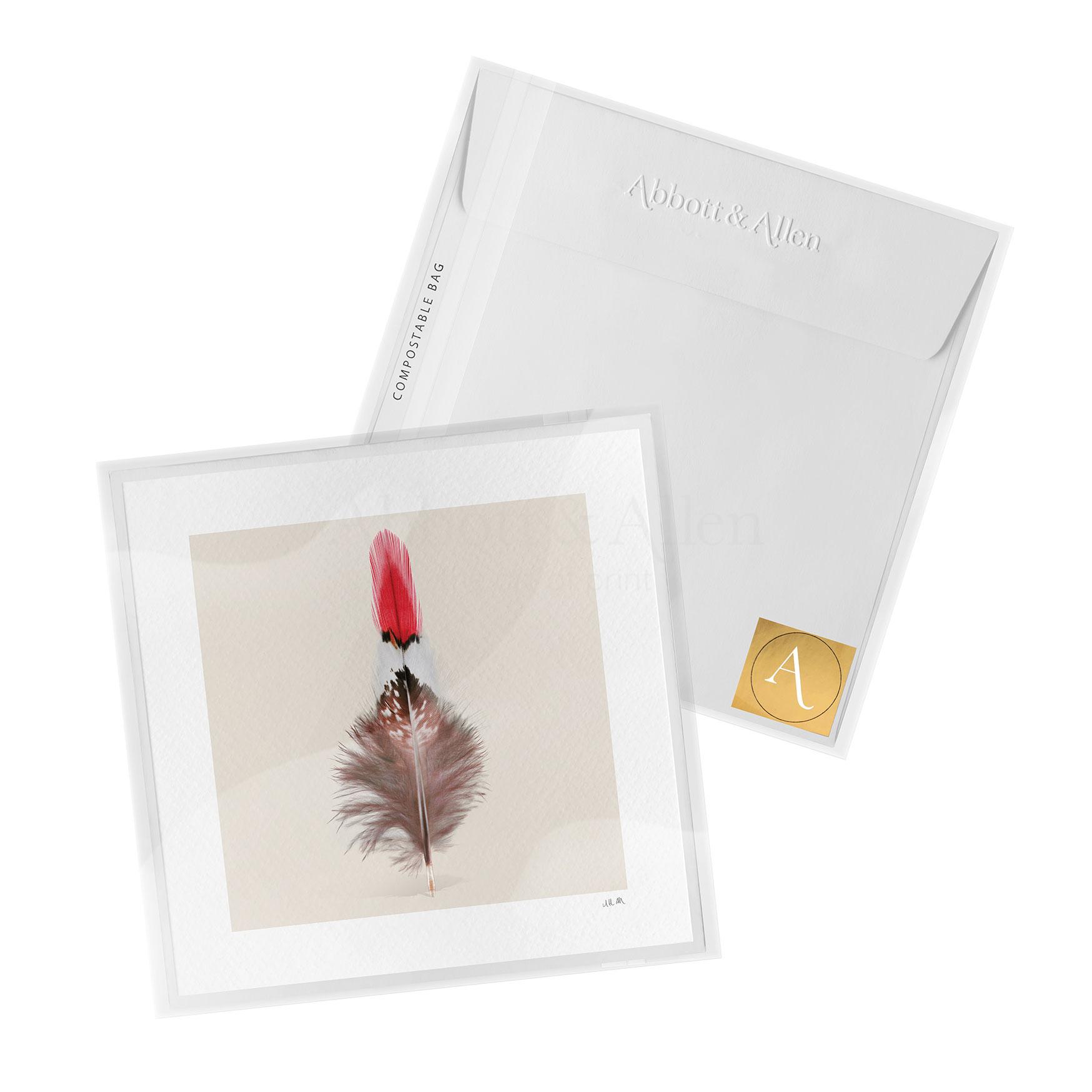 Crowned by a blaze of eye-catching plumage, this greetings card features a striking Red Copper Fire Tip Pheasant Tail Feather. Our Red Copper Fire Tip Pheasant Tail Feather greetings card is printed on a beautifully textured art stock for a high-quality, natural feel.