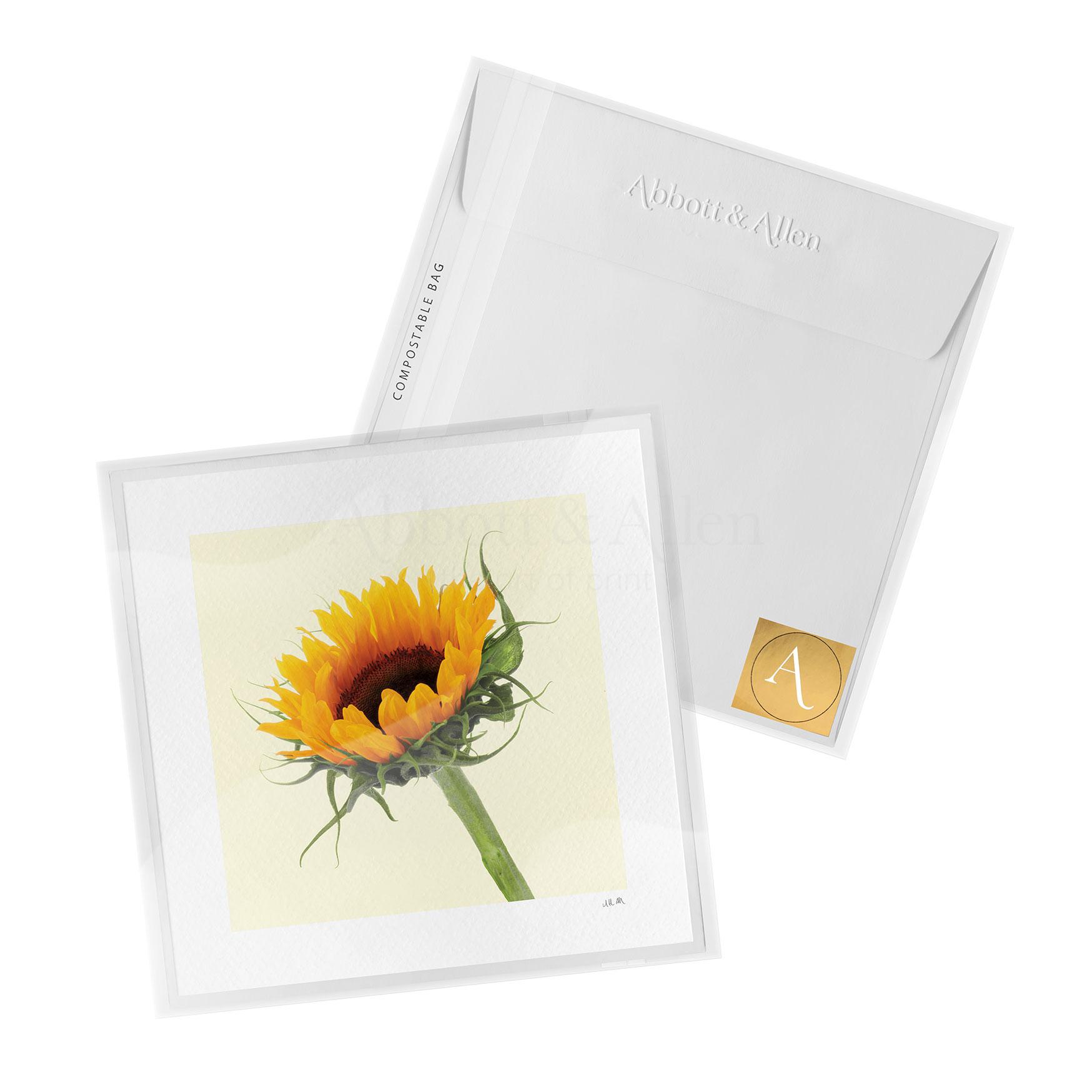 Venerated for its bright yellow, perfectly formed flowers, this greetings card features the iconic Sunflower. Our Sunflower greetings card is printed on a beautifully textured art stock for a high-quality, natural feel.